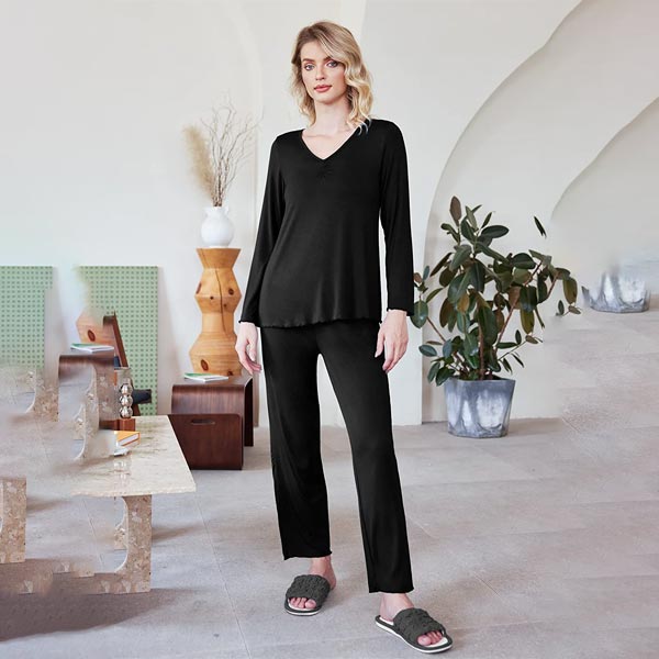 • TOP: The long sleeve pajama tops with v neck & front pleated design, simple but elegant, perfect for house or daily wear on cooling day.
