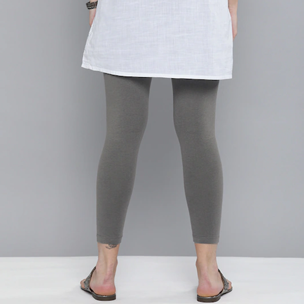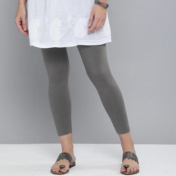 Grey solid churidar-length leggings  has an elasticated waistband and slip-on closure