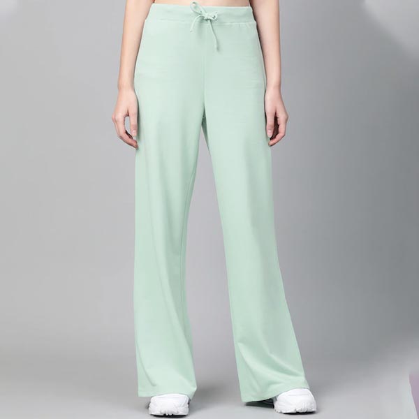 Women Mint Green Solid Wide Leg Track Pants